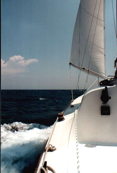 vor zehn bei achterlichem Wind mit 4-5 Windstärken und 0,5m See.